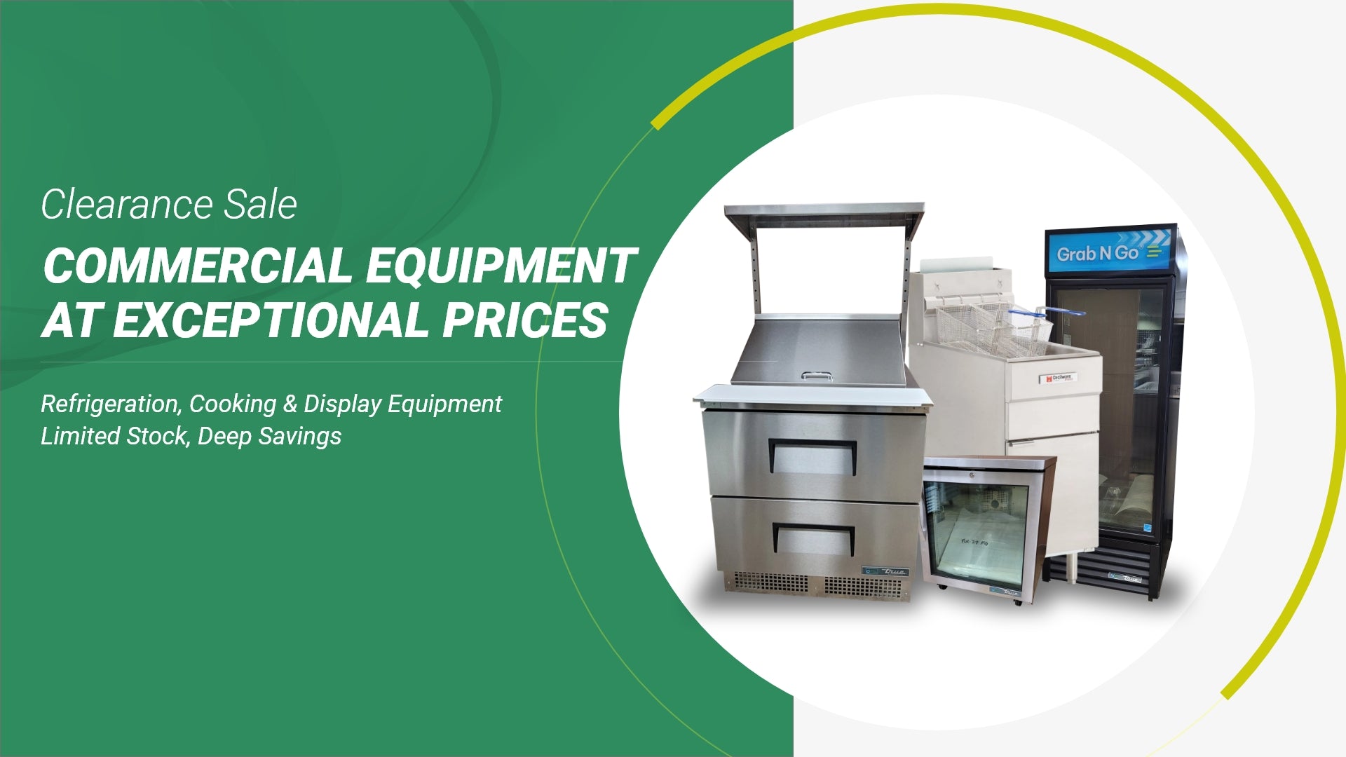 commercial refrigeration, cooking equipment, prep tables, display cases, and specialty equipment-including
