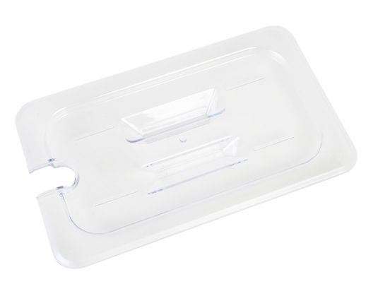 Designed to fit snugly on your existing and compatible plastic food pans, this 1/4 size slotted food pan lid is the perfect solution for salad bars, self-service buffet stations, salad prep tables, and more. Caterers and cooks in commercial kitchens will especially appreciate the benefits of a clear food pan lid with a notch for a spoon or ladle. An excellent alternative to stainless steel food pans, polycarbonate pans and stackable food pan lids will make your food handling tasks much more efficient. They’re able to withstand a wide range of temperatures from -40ºF to 210ºF, and the clear slotted food pan lid makes it easy to see the contents. The scratch-resistant, shatter-proof and dishwasher-safe commercial food pan cover keeps the contents in your food storage containers safe and uncontaminated during storage or transport.