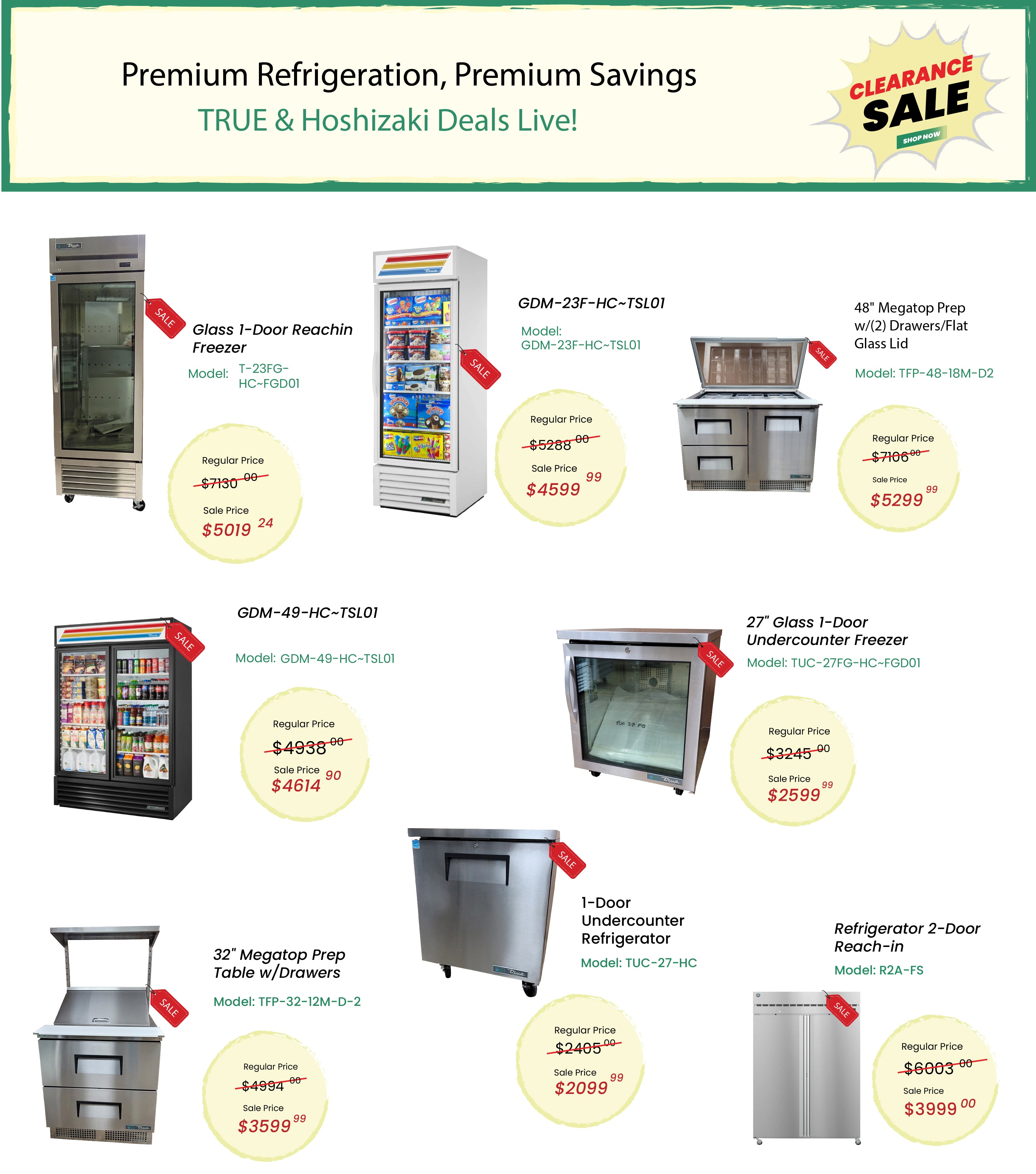 Gator Chef wraps up the year with unbeatable Year-End Clearance Deals on premium equipment — including True® Demo Units with full manufacturer warranty, certified used equipment inspected for peak performance, and brand-new ranges, fryers, griddles, prep tables, and refrigeration from trusted brands like Southbend, Hoshizaki, Federal, Valyr, and more.
