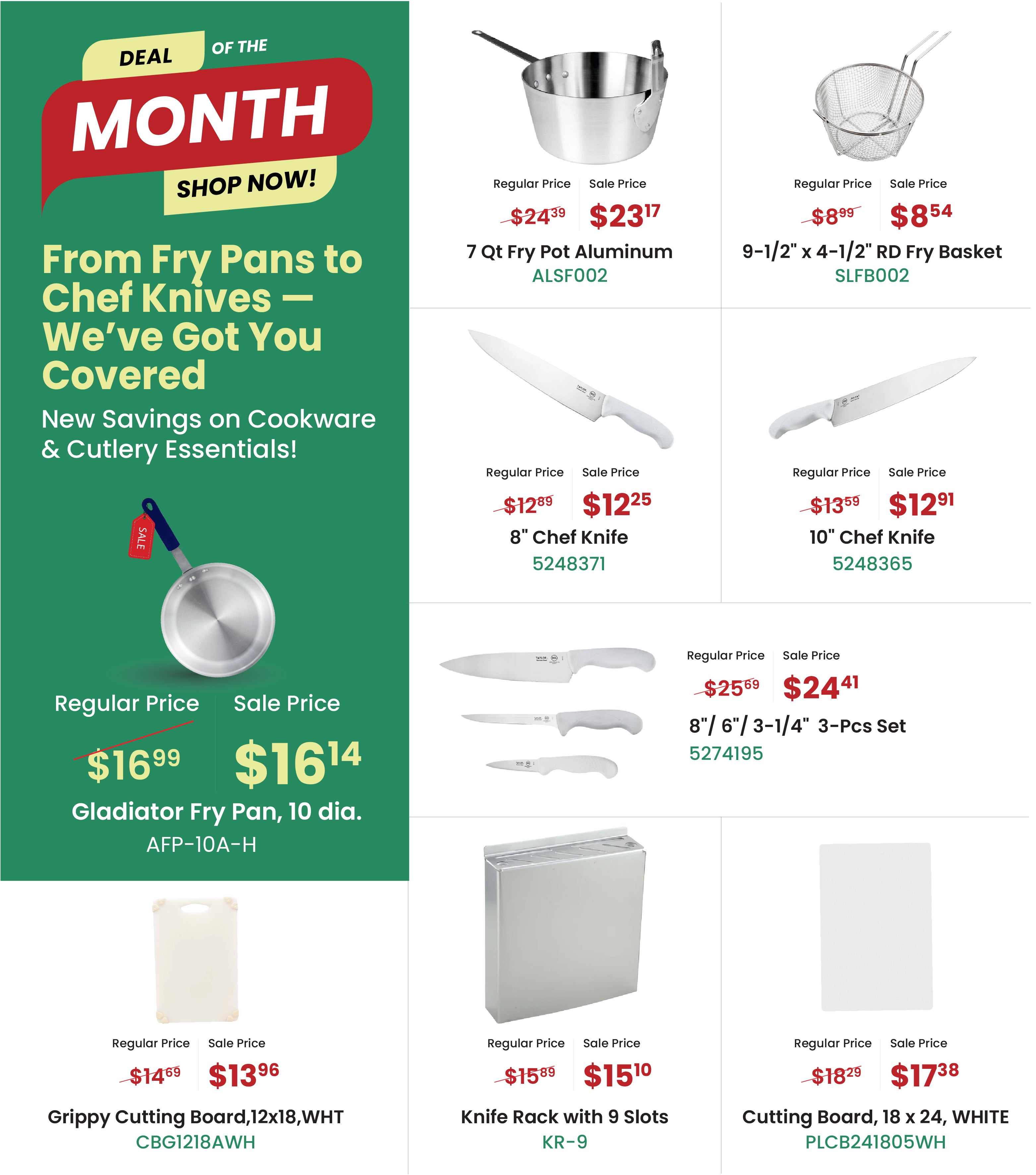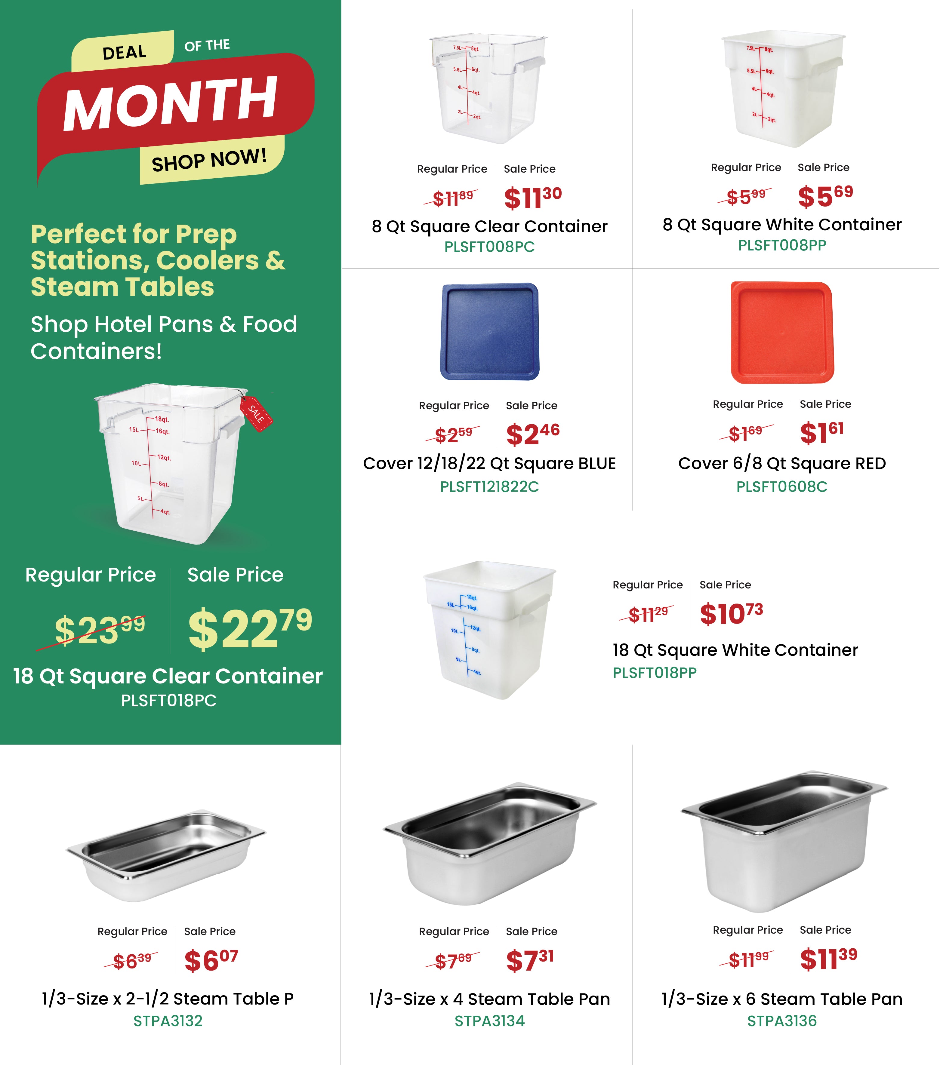 From chafer sets and steam table pans to baking essentials, cutlery, cutting boards, and NSF-certified food storage - find the perfect tools to streamline your busiest season.