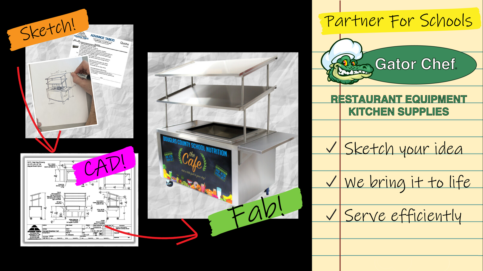 Gator Chef partners with K-12 schools to design and equip cafeterias that deliver fresh, nutritious meals efficiently and safely, all while staying within budget. With over 40 years of expertise in commercial kitchen design and equipment supply, we understand the challenges schools face in feeding students quickly, safely, and affordably. Our mission is to help your team deliver fresh, healthy meals efficiently every day.
